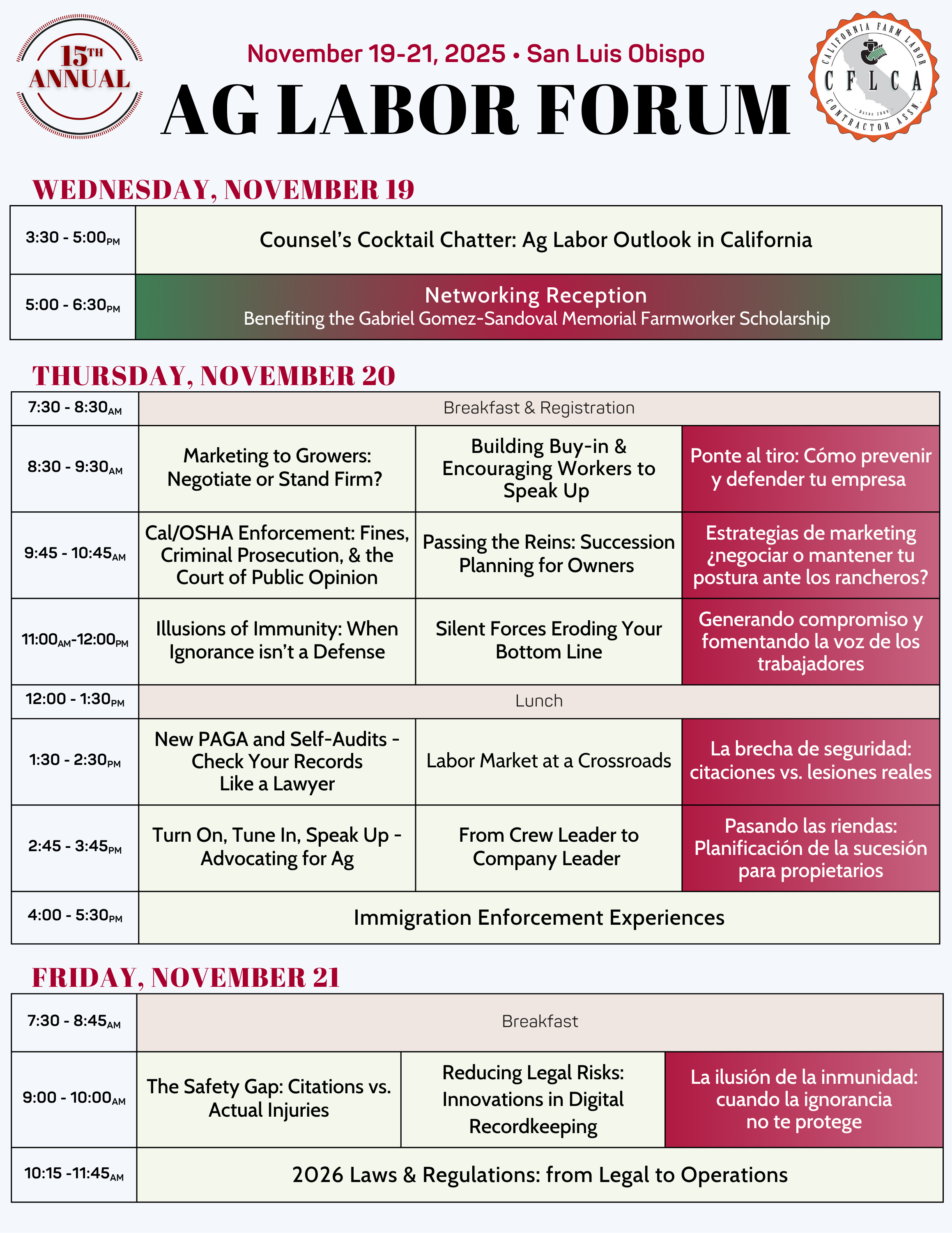 Ag Labor Forum Schedule