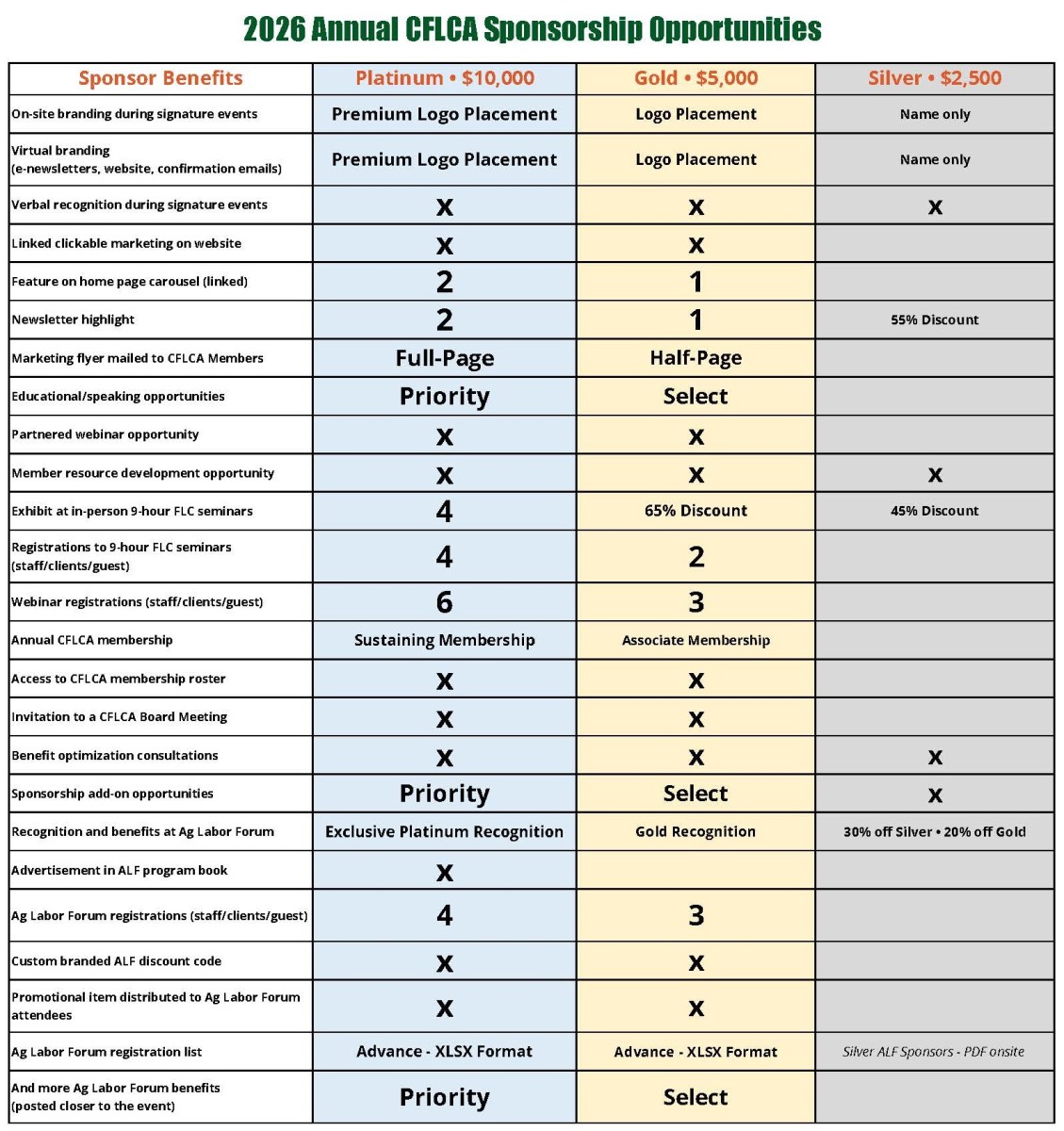 Boost your brand with CFLCA's sponsorship opportunities! Gain visibility, engage with over 250,000 farm workers, and support the ag industry. Contact us today!